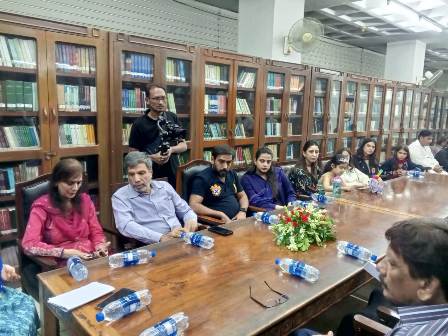 Mr. Dar’s family members — daughters Ms. Darreshehwar, Ms. Shehzadi Saif, Ms. Lalarukh; son Mr. Junaid Dar; granddaughter Dr. Zarka Saif; grandson Mr. Sohaib Zulqarnain; and Dr. Mahjabeen — shared heartfelt recollections of his personal values, intellectual pursuits, and enduring influence in the field of literature and philosophy. The session was ably moderated by Mr. Zaid Hussain.