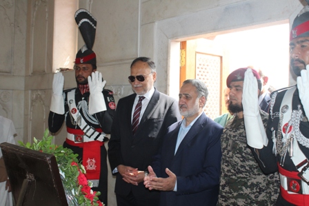 Earlier, Federal Minister for Planning and Special Initiatives, Professor Ahsan Iqbal, accompanied by the Director of Iqbal Academy Pakistan, visited the mausoleum of Allama Iqbal, laid a floral wreath, and offered prayers. Later, the "Iqbal Memorabilia Corner" was also inaugurated at Iqbal Academy Pakistan.