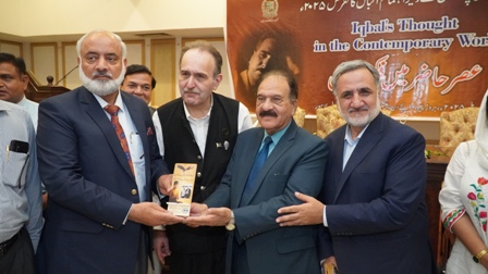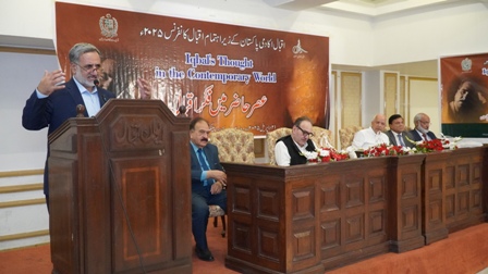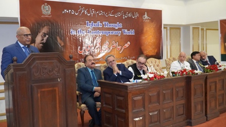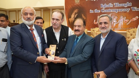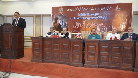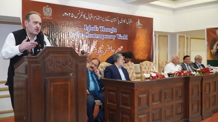 Muneeb Iqbal highlighted that Iqbal’s poetic and philosophical message emphasizes love, peace, and universal brotherhood, which should be interpreted in the context of the present age—especially his famous message, "Love conquers the world." He stressed the importance of integrating Iqbal's ideas into the educational system.