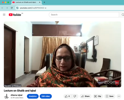 Online Lecture: "The Nature of Ghalib's Influence on Iqbal's Thought"