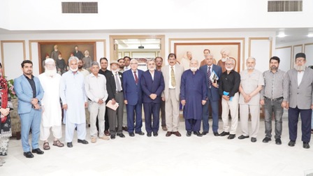 Iqbal Academy Pakistan hosted a seminar titled “Resolution of Global Conflicts in the Light of Iqbal’s Thought” to mark the International Day of International Conflicts at Aiwan-e-Iqbal Complex. The session was chaired by Dr. Abid Sherwani, Director Research & Innovation, University of Management and Technology. Brig (R) Dr. Waheed uz Zaman Tariq, noted Iqbal scholar, delivered the keynote address. Dr. Abdul Rauf Rafiqui, Director, Iqbal Academy Pakistan, presented the vote of thanks and Mr. Zaid Hussain moderated the proceedings.