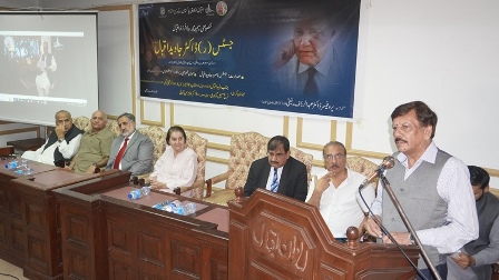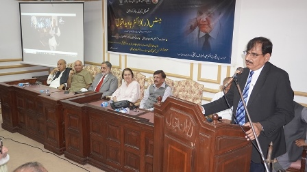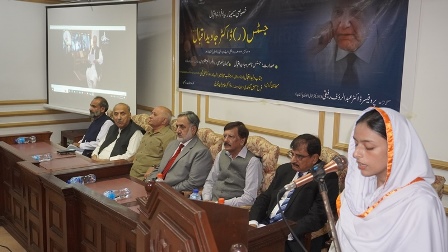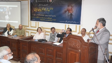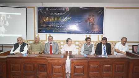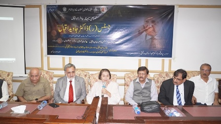 Justice (R) Nasira Javed Iqbal recalled her husband's life, saying he lived by Allama Iqbal's verse: "Mera Tareq ameeri nhe Faqeeri ha, Khudi na bech Ghareebi main naam paida kr." He spent most time of his life in academic and literary works.