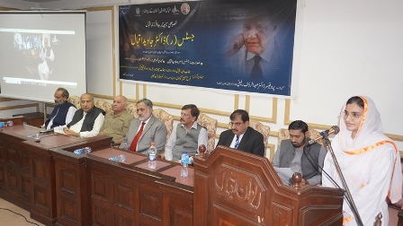 Prof. Shafiq Ajmi highlighted Dr. Javed Iqbal's academic achievements, including his PhD from Cambridge University on Islamic political philosophy.