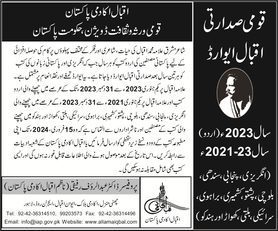 سال 2023ء (اردو), سال 2021-23ء (انگریزی، پنجابی، سندھی، بلوچی، پشتو، کشمیری، براہوی، سرائیور، بلتی، کھواڑ اور ہندکو )