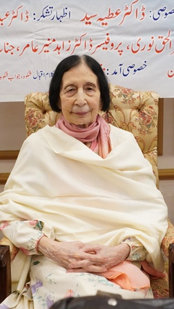 مہمان خصوصی ڈاکٹر عطیہ سید کا کہنا تھا کہ اقبال جہاں ایک طرف فلسفی با مفکر ہیں وہاں دوسری طرف فنکارانہ شاہکار تخلیق کرنے میں اپنا جواب آپ ہیں، وہ ایک نظام فکر لے کر آئے اور ایک نظام حیات کو متعارف بھی کیا۔