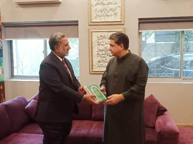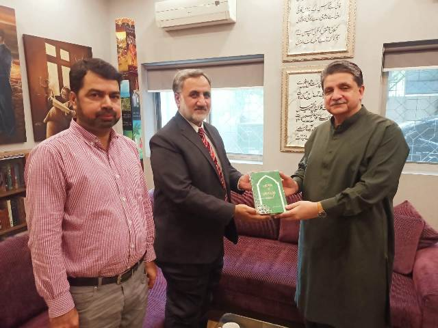 ڈائریکٹر اقبال اکادمی پاکستان ڈاکٹر عبدالرؤف رفیقی کی حضرت علامہ محمد اقبال کے نواسے ، چیئرمین دبستان اقبال ،میاں اقبال صلاح الدین سے ملاقات