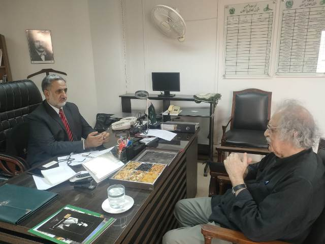 جناب سروش عرفانی صاحبزادہ ڈاکٹر خواجہ عبدالحمید عرفانی اور سابق ڈائریکٹر ریسرچ اینڈ پبلکیشنز،نیشنل کالج آف آرٹس لاہور نےڈائریکٹر اقبال اکادمی پاکستان ڈاکٹر عبدالرٔوف رفیقی سے ملاقات کی اور انہیں ڈائریکٹر اقبال اکادمی پاکستان کا عہدہ سنبھالنے پر مبارک بادپیش کی۔