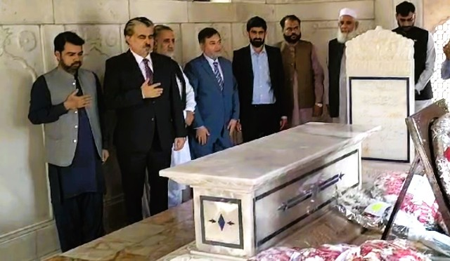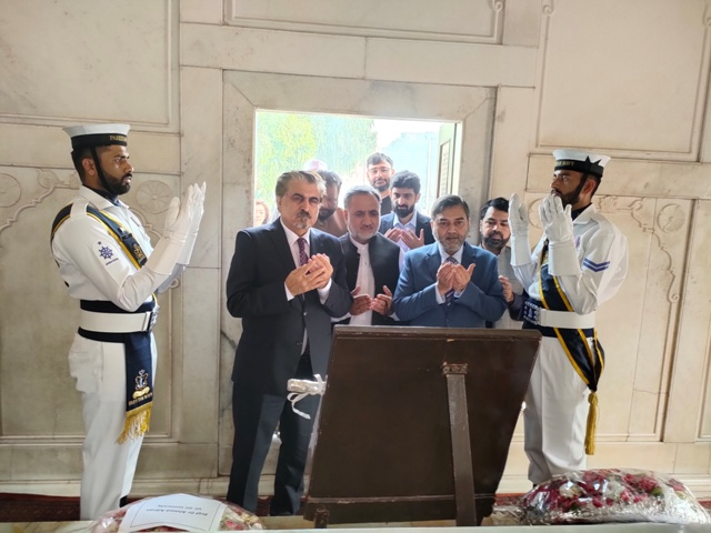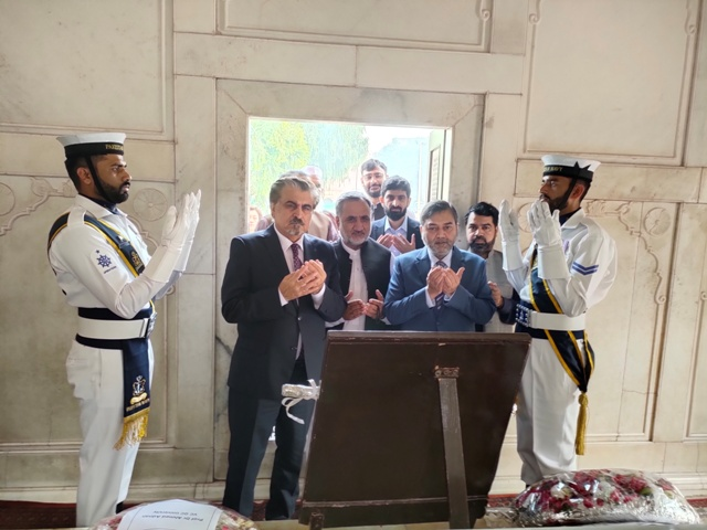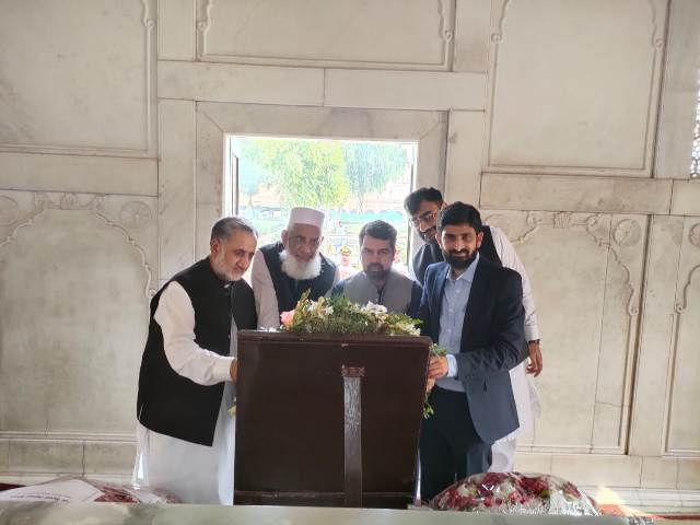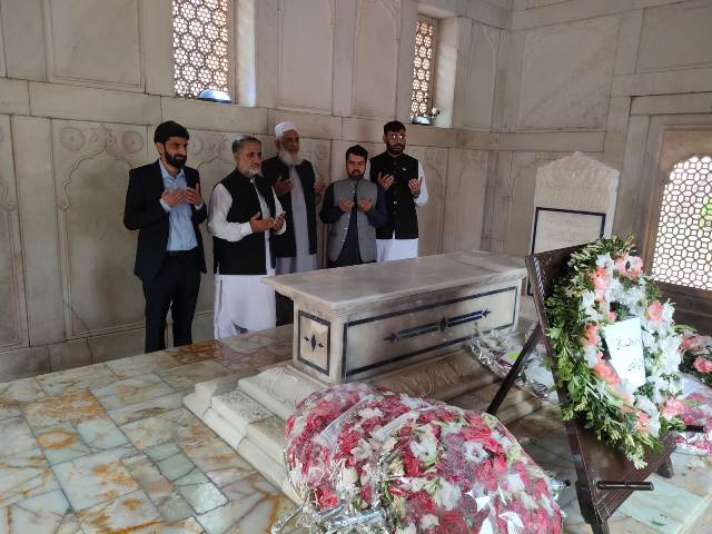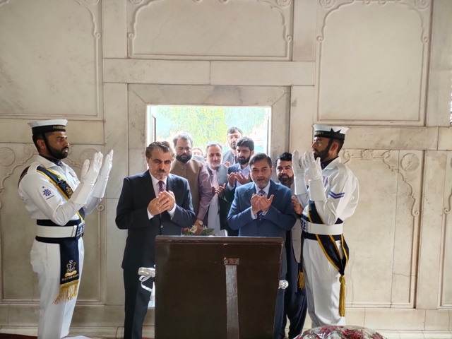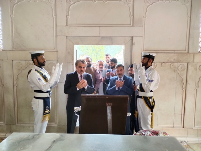 علامہ اقبال کے 146 ویں یوم ولادت کے موقع پر وفاقی وزیر برائے قومی ورثہ و ثقافت جناب سید جمال شاہ نے ڈائریکٹر اقبال اکادمی پاکستان ڈاکٹر عبدالرؤف رفیقی کے ہمراہ مزار اقبال پر حاضری دی