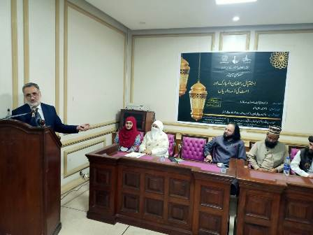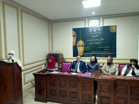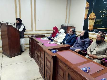 اقبال اکادمی پاکستان کے زیر اہتمام ’’استقبال رمضان اور امت مسلمہ کی ذمہ داریاں‘‘کےموضوع سے ۷مارچ ۲۰۲۴ء کو خصوصی سیمینار کا انعقادکیا گیا۔ سیمینار کی صدارت معروف سیرت نگار ڈاکٹر طارق شریف زادہ نے کی۔ مہمان خصوصی سابق ممبر پارلیمنٹ و نظریاتی کونسل ڈاکٹر سمیحہ راحیل قاضی تھیں۔ ڈائریکٹر اقبال اکادمی پاکستان ڈاکٹر عبدالرؤف رفیقی نے کلمات تشکر پیش کیے۔ مہمان مقررین میں شعبہ اسلامک سٹڈیز گیریژن یونیورسٹی کے ڈاکٹر وارث علی شاہین ، مولانا محمدبشارت رضوی شامل تھے۔ محترمہ نرید فاطمہ نے نظامت کے فرائض انجام دئیے۔